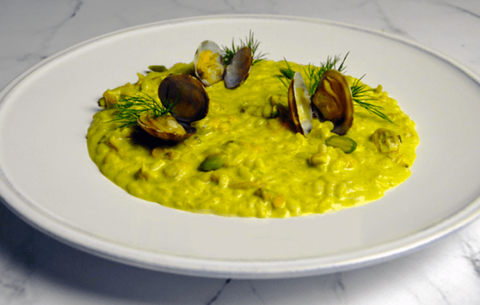 Un piatto delizioso dall’intenso profumo di mare in cui delicate capesante si fondono in un risotto cremosissimo, impreziosito dalla stracciatella di Andria e qualche croccante chips di cavolo nero.