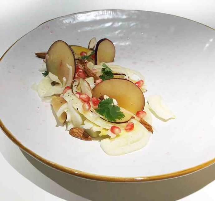 Un’insalata elegante e dai toni acidi, perfetta per accompagnare un secondo di carne o di pesce speziato e saporito.