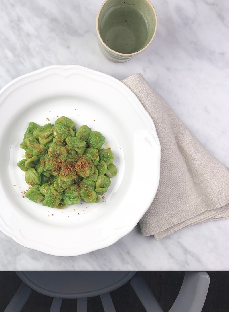 L’abbinamento orecchiette e cime di rapa è un classico pugliese super gustoso. Questa è una variante con pesto di cime di rapa, noci e parmigiano. Ho utilizzato delle orecchiette fresche di semola integrale di grano duro e ho completato il piatto con una spolverata di pane grattugiato tostato. INGREDIENTI per 4 pax: 400 g di…