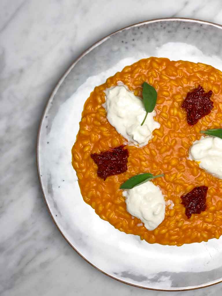 Un risotto super spicy e cremosissimo, perfetto come coccola del weekend. Zucca Butternut, nduja e stracciatella sono un mix esplolsivo.