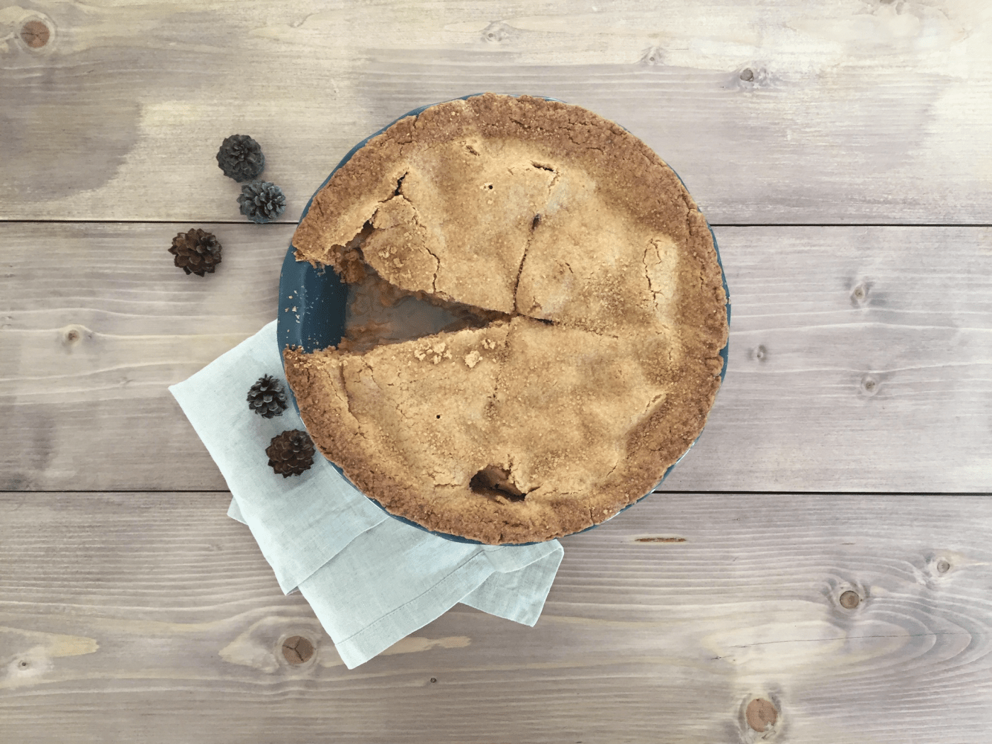 Imburrate un classico stampo da torta (circa 26 cm di diametro) e foderatelo con l’impasto appena steso. Farcite con le pere e i biscotti sbriciolati. Stendete il rimanente impasto e con questo coprite la torta. Con l’aiuto di un coltello, tagliate i bordi in eccesso e fate 4 incisioni sulla superficie per far uscire il vapore durante la cottura – o se preferite potete ritagliare un cerchietto al centro (come le classiche pie americane). Dopo una spolverata di zucchero di canna, che aggiungerà croccantezza, la torta è pronta per il forno.