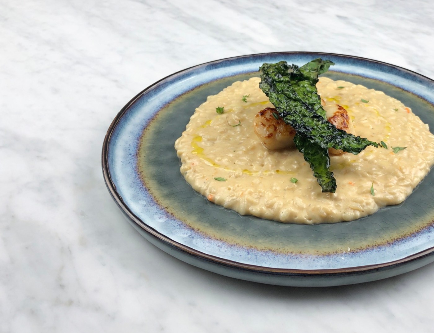 Un piatto delizioso dall’intenso profumo di mare in cui delicate capesante si fondono in un risotto cremosissimo, impreziosito dalla stracciatella di Andria e qualche croccante chips di cavolo nero.