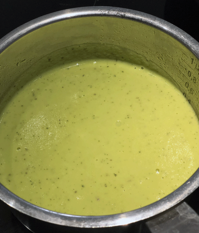 Passate ora ad impiattare. Se necessario, riscaldate leggermente la crema di fave in un pentolino – tenendo conto che va servita tiepida – e versatela poi in un piatto fondo.