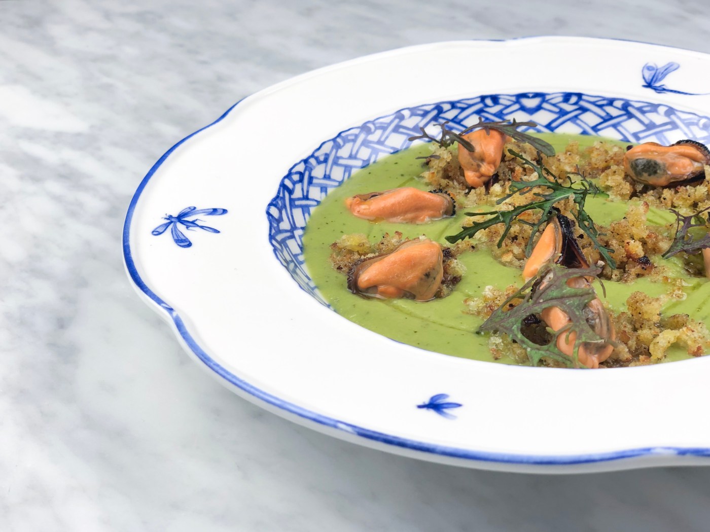 Una cremosissima purea di fave resa deliziosa da un twist di pecorino, accompagnata da cozze fresche adagiate su briciole piccanti super crunchy.