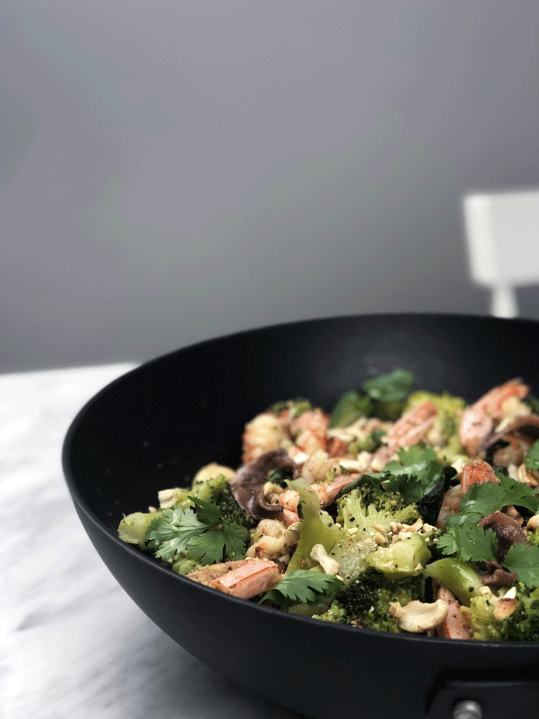Cosa c’è di meglio di saltellare broccoletti pugliesi e gamberi nel wok e renderli speciali con l’aggiunta di deliziose acciughe e fragranti anacardi tostati?