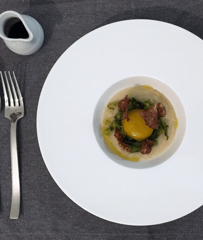 Un entrée sfiziosa con piacevoli contrasti di consistenze, dove l’uovo è il protagonista del piatto.
